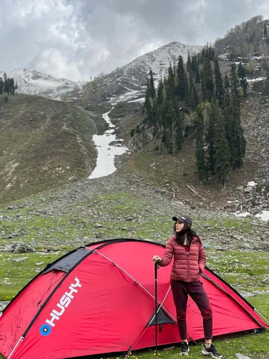 নিজের ইনস্টাগ্রামে ছবির সঙ্গে ক্যাপশন, 'কাশ্মীর কি কলি, ব্যাক টু ইওর গলি, নাও ট্রেকিং পে ম্যায় চলি'।
