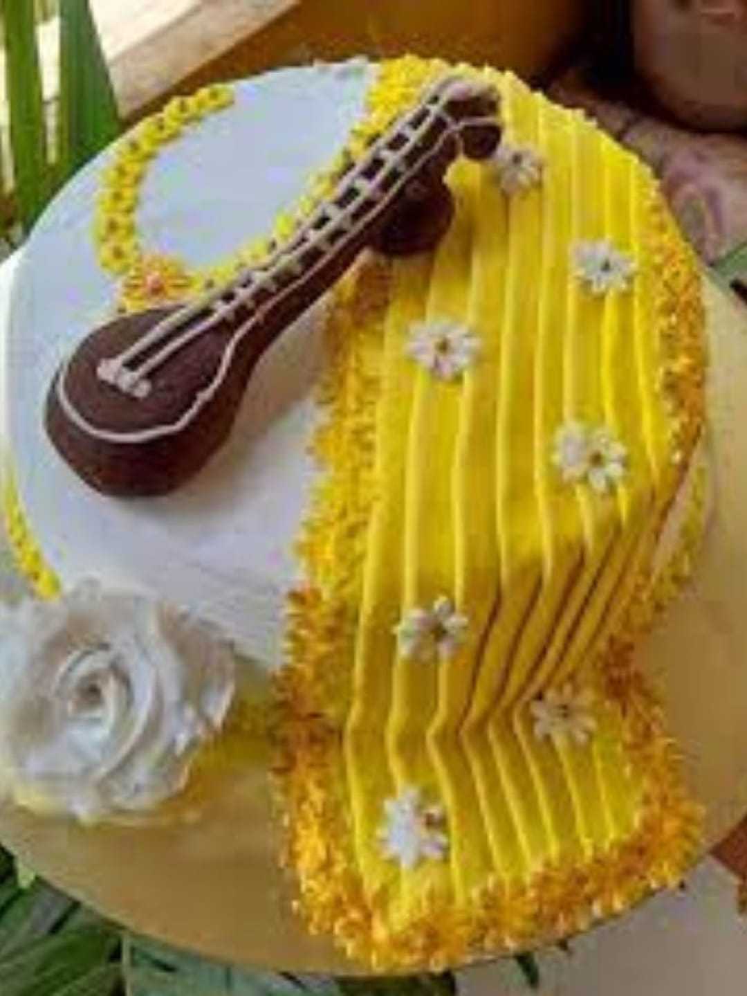 বীণা, বাসন্তী রঙের ছোঁয়া, বই, কলম সবই থাকবে এই কেকের ডিজাইনে।