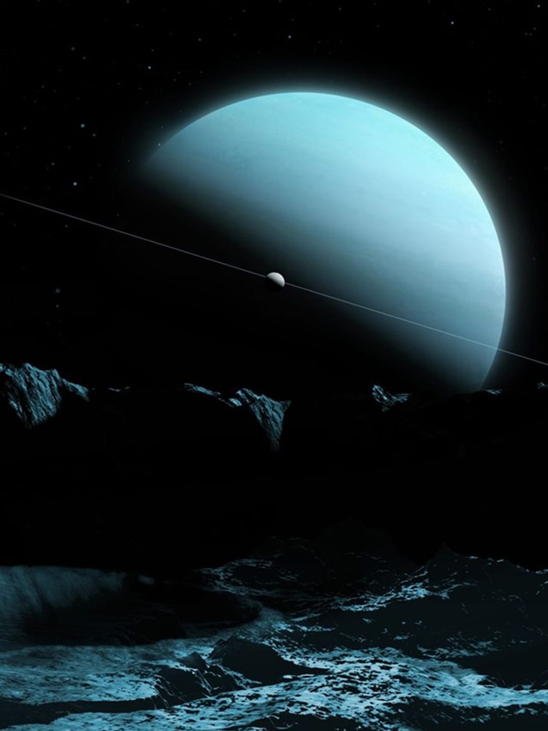 যে অংশ সূর্যের দিকে রয়েছে, তা মুক্তোর মতো জ্বলছে। ইউরেনাসের মেরুতে একটি ভিন্ন আভা দেখা গিয়েছে। এর পৃষ্ঠে জল, মিথেন এবং অ্যামোনিয়া রয়েছে।