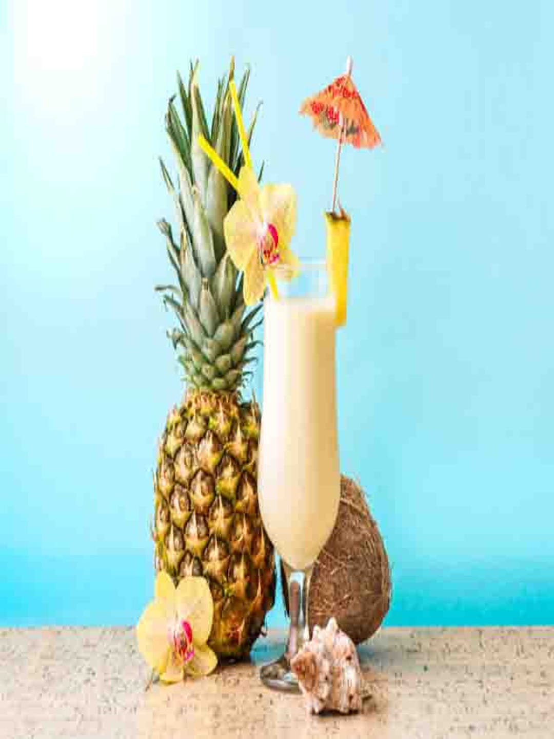 বরফ কুচি দিয়ে পরিবেশন করুন ডাব ও আনারসের স্মুদি।