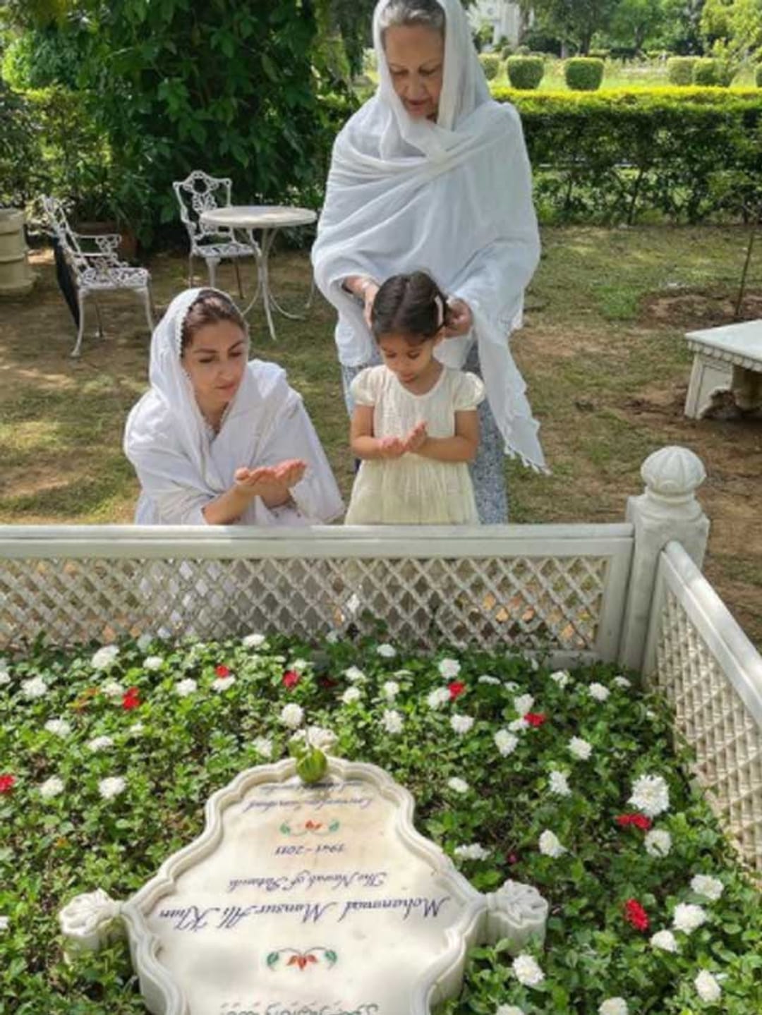 মা শর্মিলা এবং মেয়ে ইনায়াকে নিয়ে বাবার কবরে শ্রদ্ধা সোহার