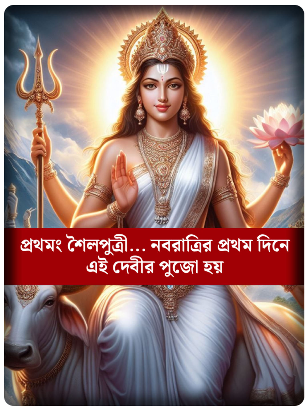নবরাত্রির প্রথম দিন শৈলপুত্রীর পুজো করলে জীবনে সকল বাধা বিপত্তি দূর হয় এবং সমৃদ্ধি আসে।