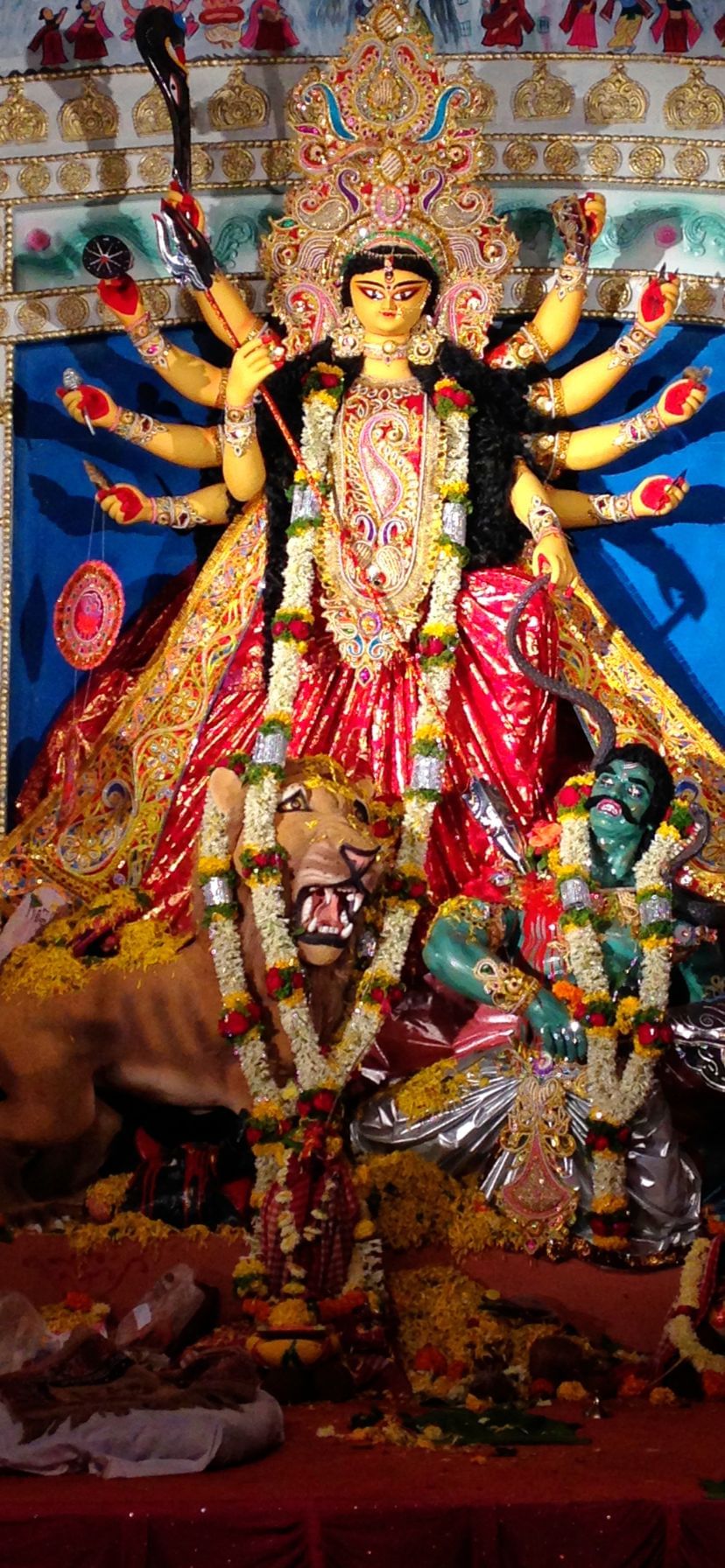 মহিষাসুরের সঙ্গে যুদ্ধের আগে মহাদেব (শিব) তাঁর নিজের ত্রিশূল দিয়েছিলেন দেবী দুর্গাকে। প্রতীক: তিন লোক ও তিন গুণের নিয়ন্ত্রণ।
