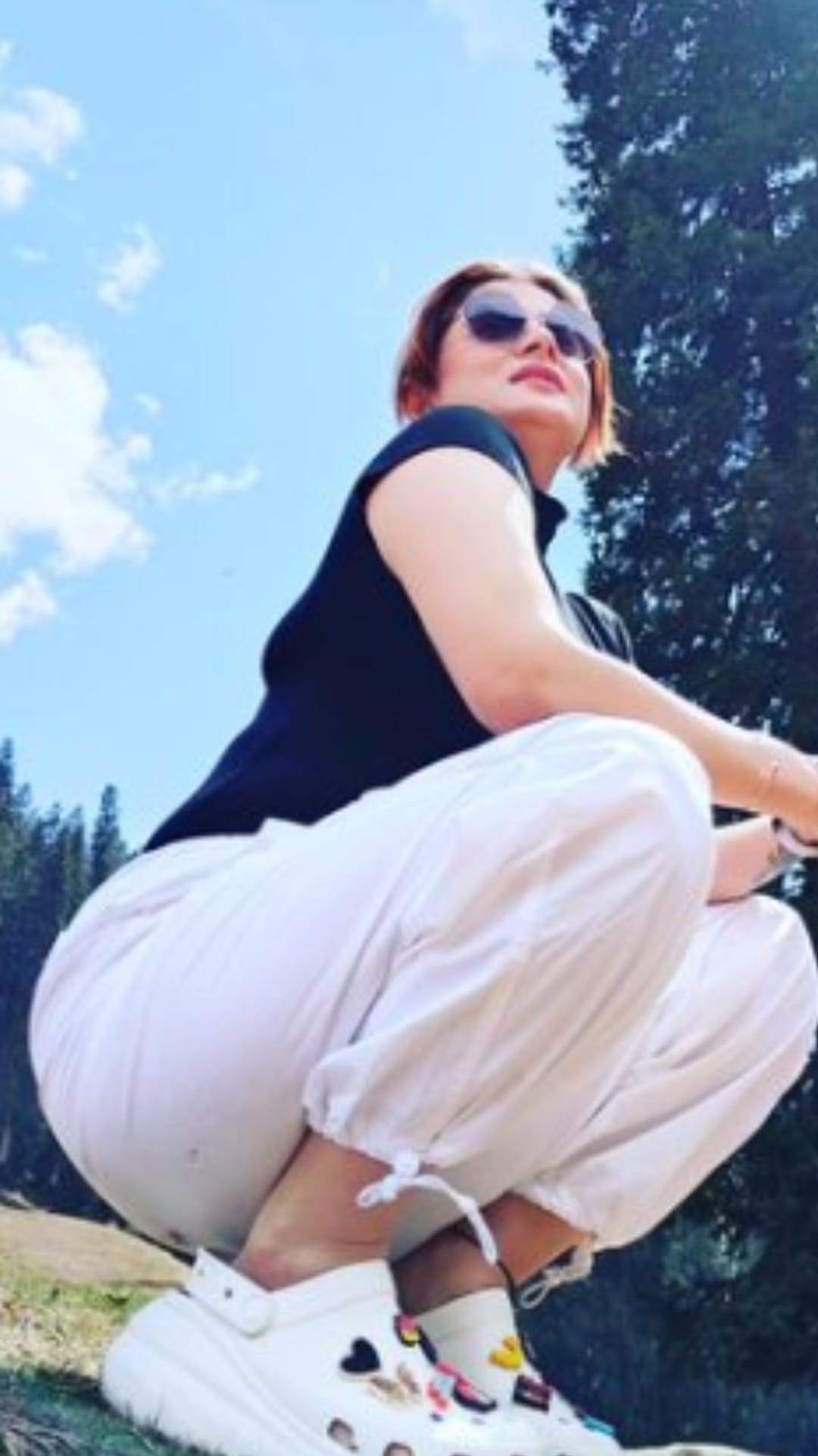 কালো সানগ্লাস পরে মাটির খুব কাছাকাছি শ্রাবন্তী