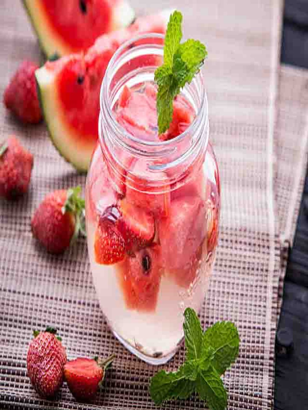 এক কাপ তরমুজের সঙ্গে ১০টা পুদিনা পাতা মিশিয়ে এক জার জলে রেখে দিন