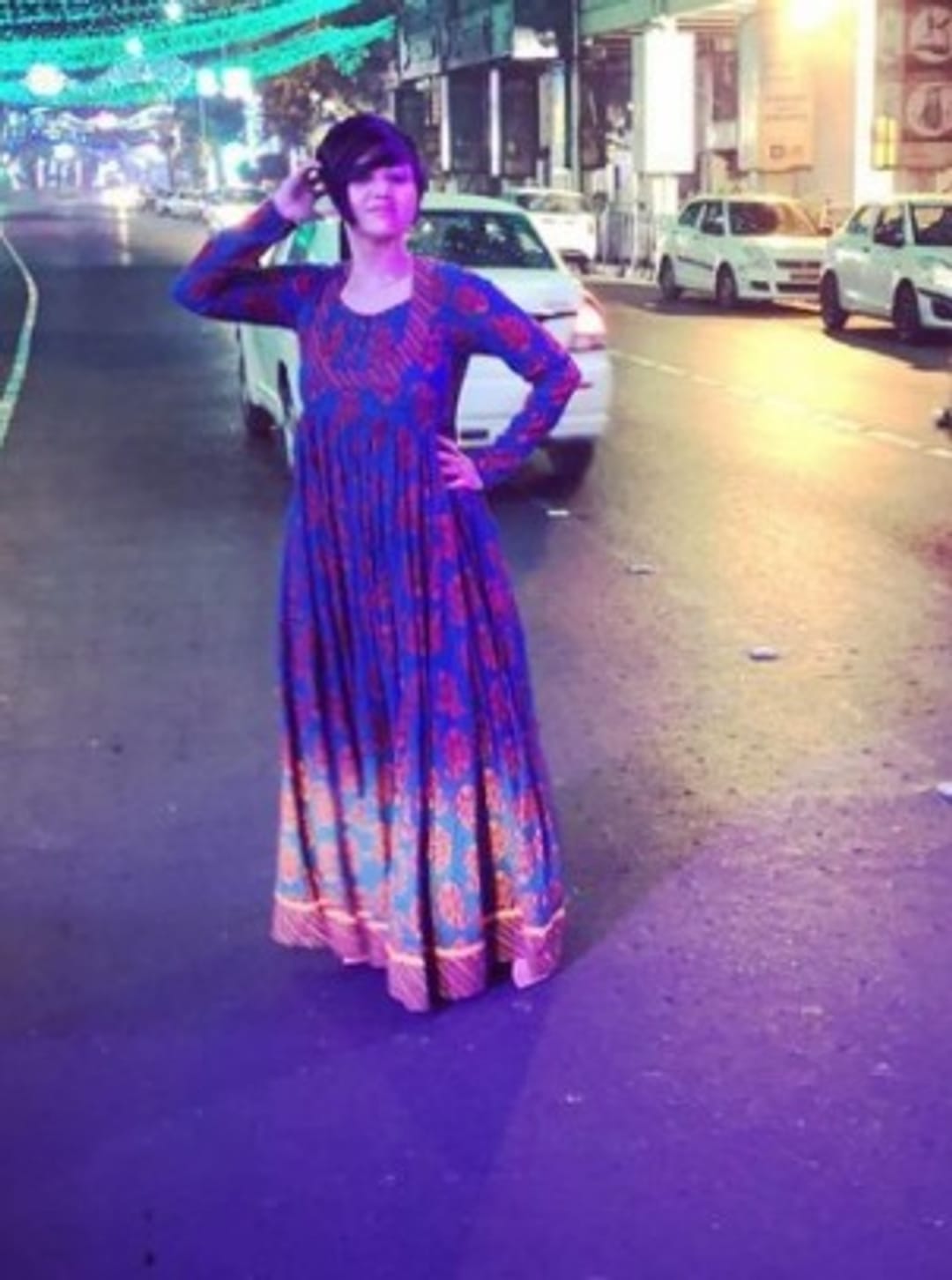 নীল পোশাক পরেছেন স্বস্তিকা