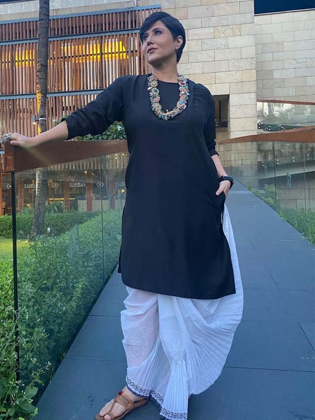 সাদা ধুতির সঙ্গে কালো কুর্তা, গলায় জাঙ্ক জুয়েরালি এই হল তাঁর নতুন সাজ।