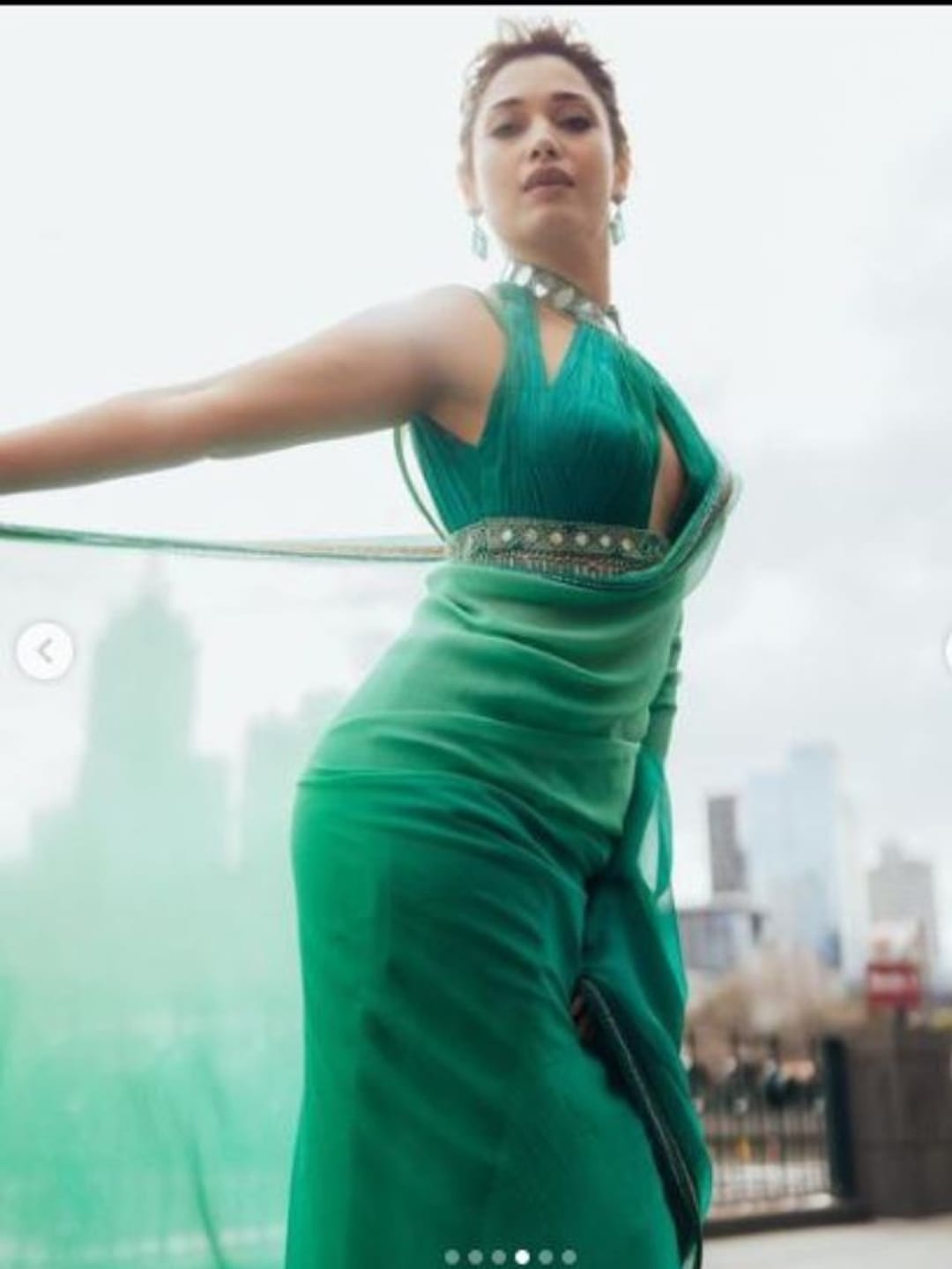 উবর-সেক্সি হল্টার নেক ব্লাউজ আর গ্রিন সিফন শাড়িতে গ্ল্যামারাস এই দক্ষিণী নায়িকা।