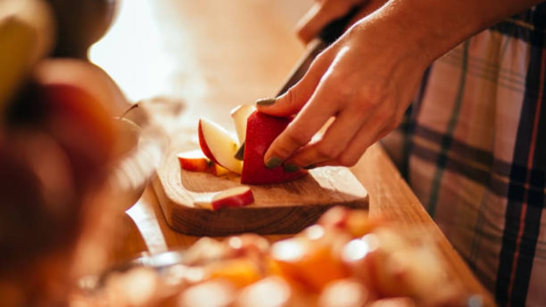 একটা বাটিতে ঠান্ডা জল নিয়ে ওর মধ্যে কয়েক ফোঁটা লেবুর রস মিশিয়ে কাটা আপেল ফেলে রাখুন, এতে আপেল লাল হবে না