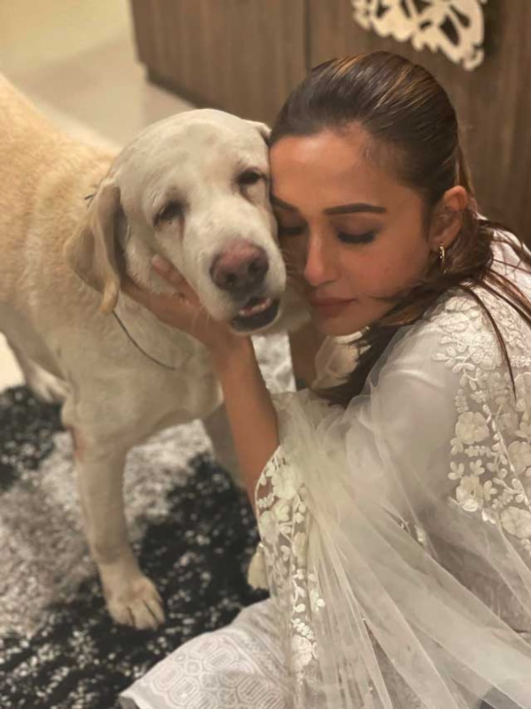 পোষ্যের সঙ্গে শ্রীলেখা মিত্র