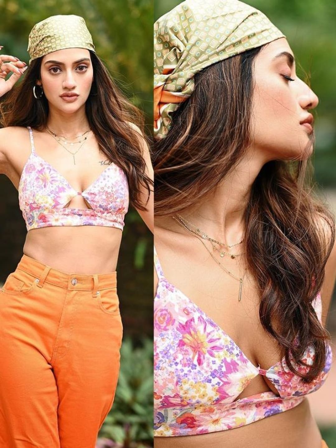 ব্র্যালেট টপ ও প্যান্টে দেখা যাচ্ছে অভিনেত্রীকে