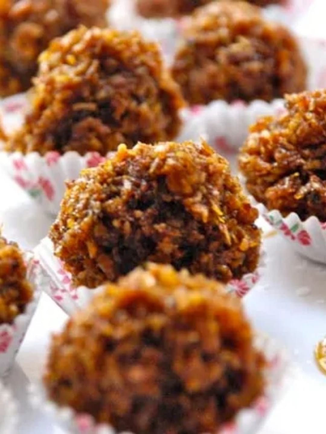 এবার মেখে রাখা নারকেল থেকে গোল গোল করে নাড়ু করে চকোলেট গুঁড়োতে মাখিয়ে নিতে হবে
