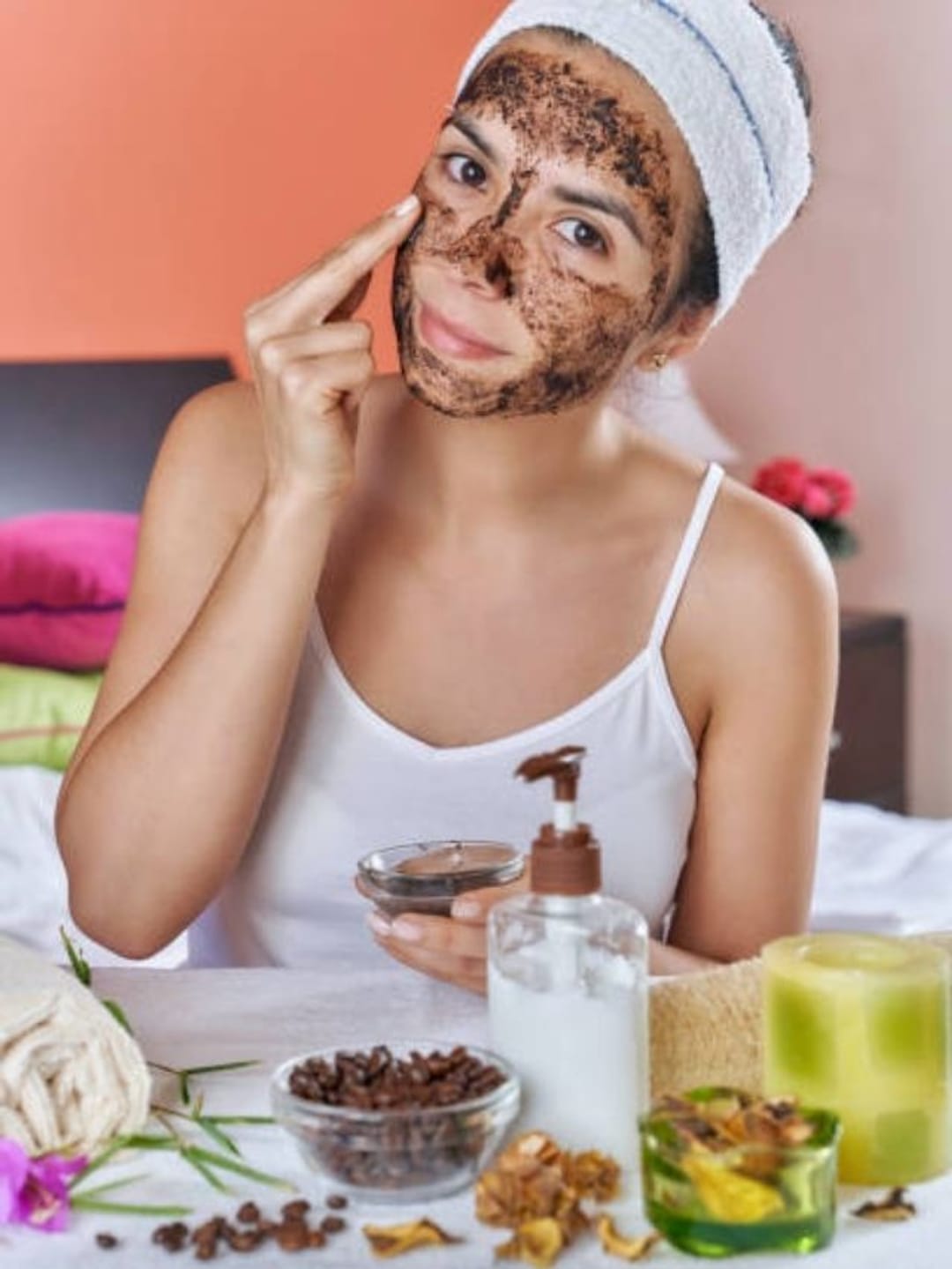 একটি বাটিতে কফি পাউডার, দারুচিনি গুঁড়ো, নারকেল তেল একসঙ্গে মিশিয়ে একটি প্যাক বানান