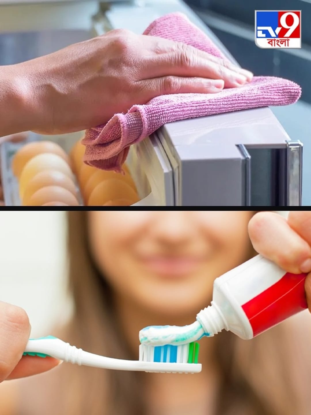 টুথব্রাশে টুথপেস্ট নিয়ে ময়লা জায়গায় ঘষতে হবে।