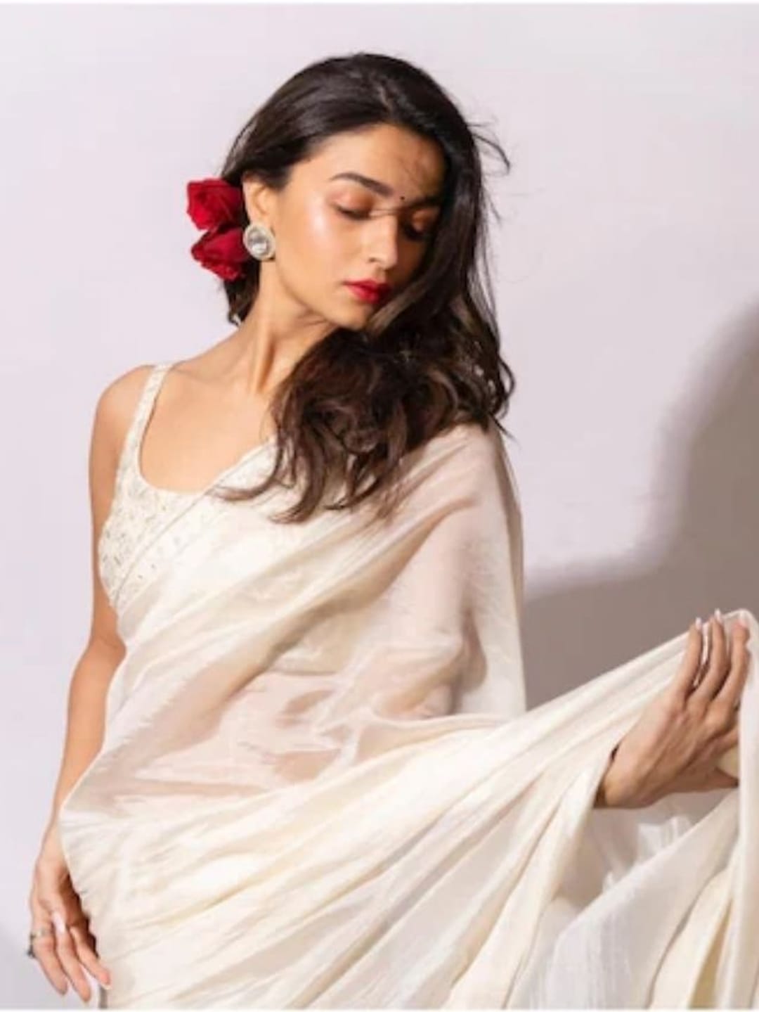 সাদা শাড়ির সঙ্গে বেছে নিন অফ শোল্ডার ব্লাউজ