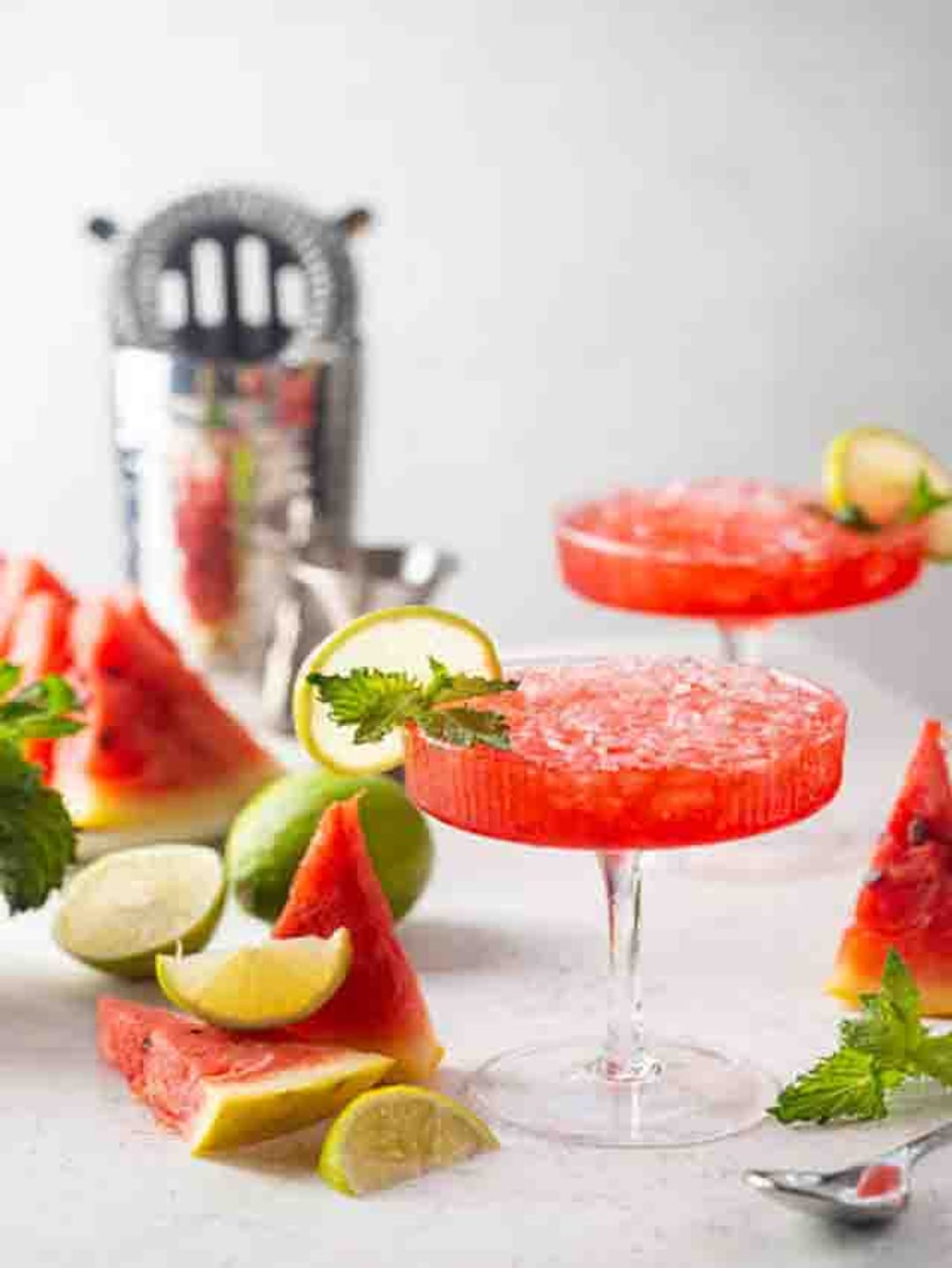 ওপর দিয়ে তরমুজের কুচি দিয়ে পরিবেশন করুন তরমুজ মার্টিনি