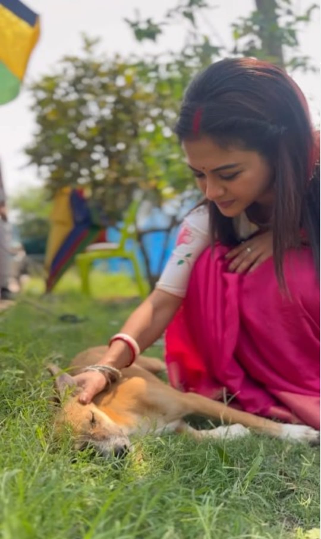 তাই শুটিং সেটে একটি সারমেয়কে কাছে পেয়েই বেশ খুশি তিনি