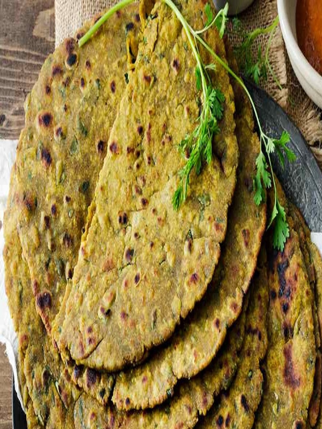 ১ কাপ বাজরার আটা, ১/২ কাপ আটা, ১/২ চামচ নুন, গরম জল আর ১ চামচ ঘি দিয়ে ভাল করে মেখে নিন