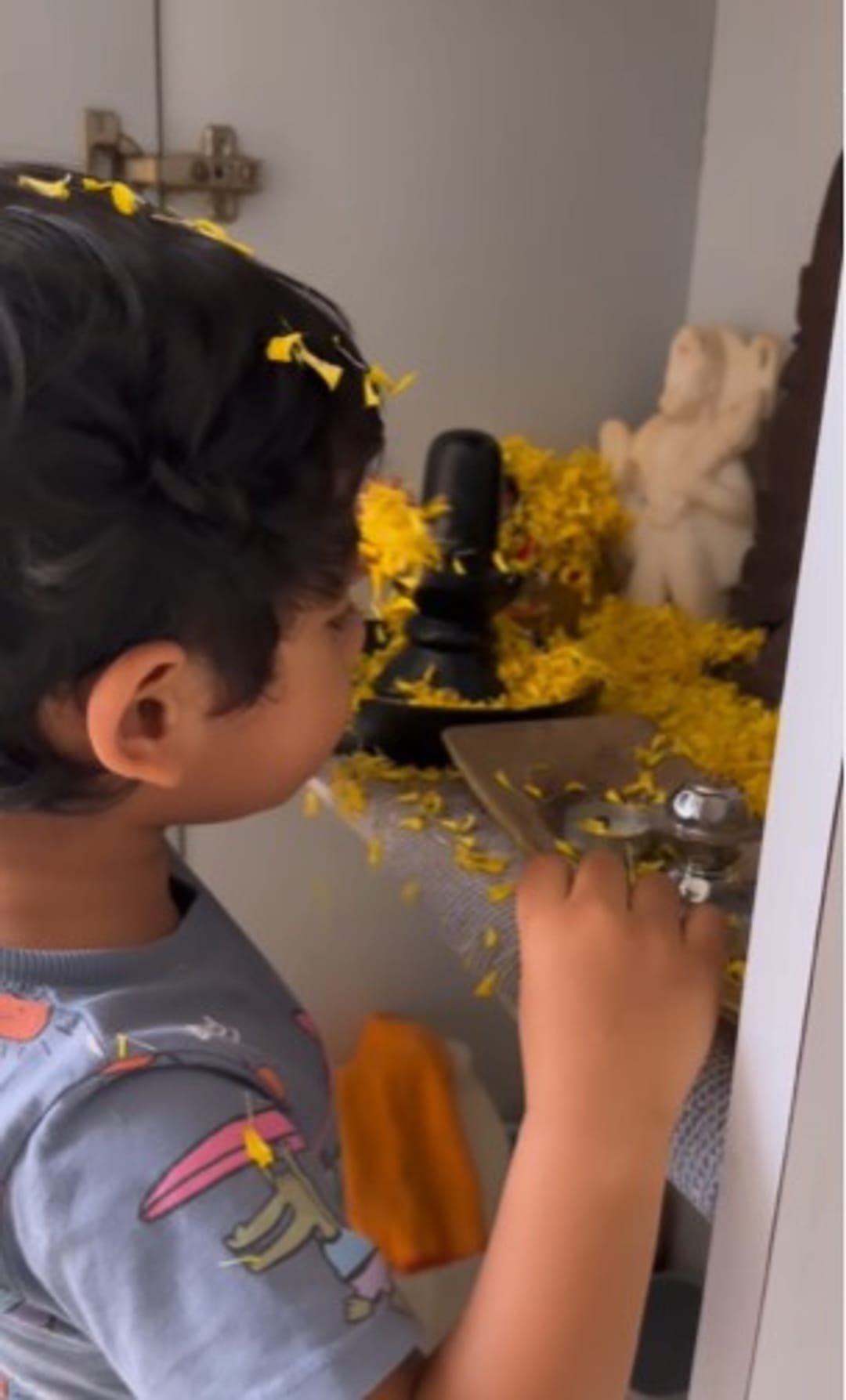শুভশ্রী মাঝে মধ্যেই ইউভানকে সঙ্গে রেখে পুজো করে থাকেন