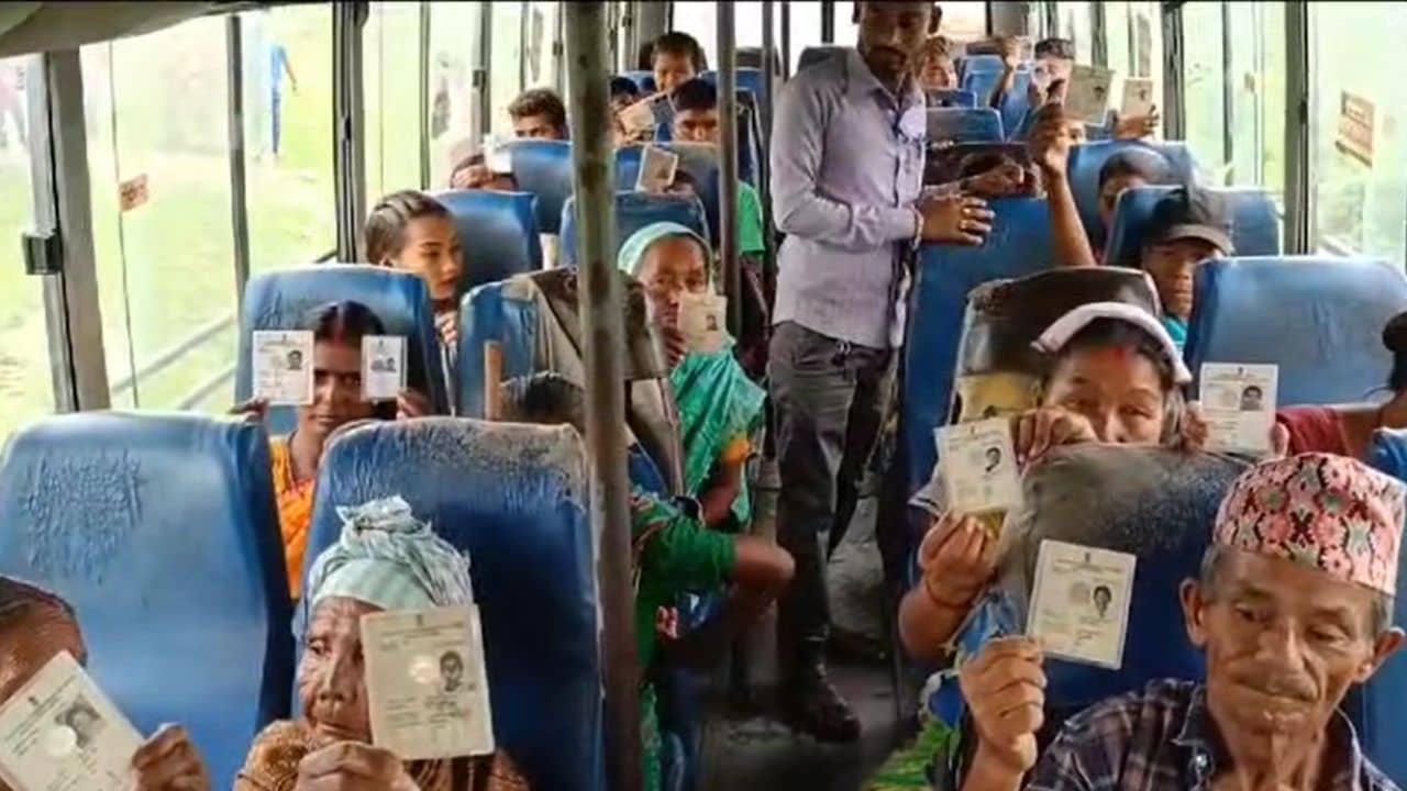 বাসে চেপে সকলে মিলে হাজির হলেন ভোটগ্রহণ কেন্দ্রে। ভোট দিয়ে গ্রামের এদিক ওদিক খানিকটা ঘুরেও নিলেন তাঁরা। কারও কারও চোখ চিকচিক করছে, চলকে পড়ছে জলও। ঝাপসা চোখে কত স্মৃতি ভিড় করছে। সকলেই জানেন, এবারই শেষ। পুরোপুরি এবার গ্রামের সঙ্গে ছিন্ন হবে সম্পর্ক।