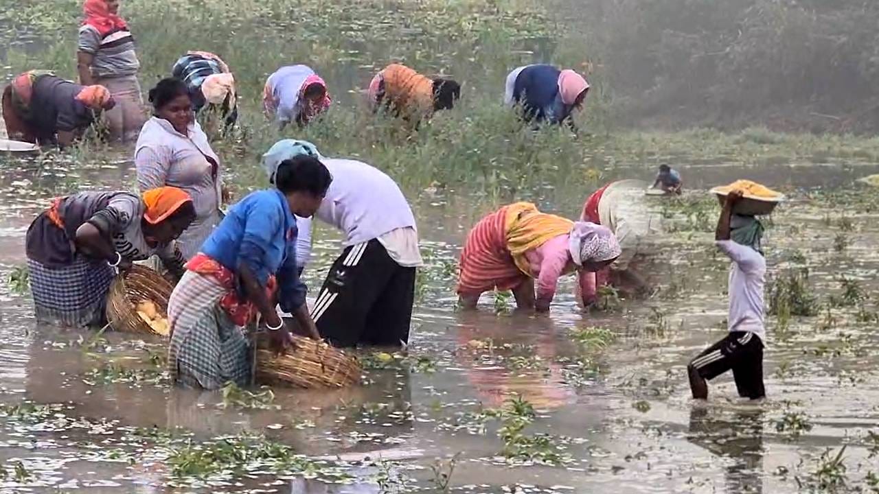 বাঁকুড়া: একদিকে বৃষ্টি আর অন্যদিকে ডিভিসির ছাড়া জলে অকাল বন্যায় ভাসল বিঘার পর বিঘা আলুর জমি। কোমর জলের নিচ থেকে আলু তুলে আনার আপ্রাণ চেষ্টা চাষিদের। পরিস্থিতি খতিয়ে দেখে ক্ষতিগ্রস্ত আলু কিনে নেওয়ার নির্দেশ প্রশাসনের। মাথায় হাত বাঁকুড়ার সোনামুখী ব্লকের উত্তর নিত্যানন্দপুর গ্রাম লাগোয়া এলাকার বাসিন্দাদের। কোমর জলের নিচে ডুবে গিয়েছে গ্রাম লাগোয়া প্রায় একশো বিঘা জমির আলু। কোমর জলে নেমে কোনওক্রমে ক্ষতিগ্রস্ত আলু তুলে আনার চেষ্টা চালাচ্ছেন চাষিরা। সরেজমিনে ক্ষয়ক্ষতি খতিয়ে দেখে সুফল বাংলাকে ক্ষতিগ্রস্ত আলু কিনে নেওয়ার নির্দেশ দিল প্রশাসন।