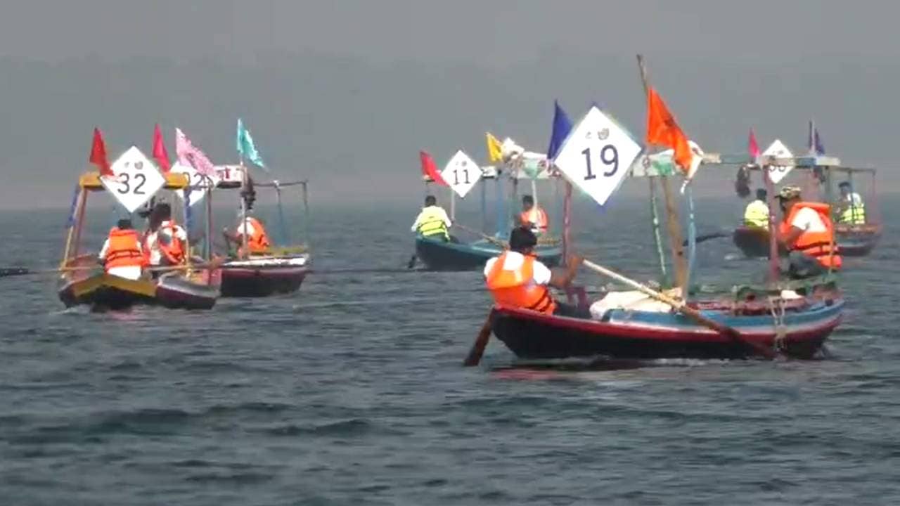 মুকুটমণিপুর: বছরের অন্য সময় তো বটেই, শীত এলেই বাংলার পর্যটকদের অনেকেই ছুটে আসেন রাজ্যের অন্যতম আকর্ষণীয় পর্যটনকেন্দ্র বাঁকুড়ার মুকুটমণিপুরে। এক ছাতার তলায় পাহাড় জল আর জঙ্গলের অপূর্ব স্বাদ নিতে প্রতি বছর রাজ্যের তো বটেই ভিন রাজ্যেরও বহু পর্যটক ছুটে আসেন বাঁকুড়ার মুকুটমণিপুরে। সেই মুকুটমণিপুরের পর্যটনে এবার যোগ হল নতুন পালক। জলাধারের নৌকা চালকদের উৎসাহ দেওয়ার পাশাপাশি পর্যটক টানতে মুকুটমণিপুরে প্রথমবার আয়োজিত হল নৌকাবাইচ প্রতিযোগিতা। প্রতিযোগিতায় মুকুটমনিপুর জলাধারের নীল জলে ভাসল প্রায় ৫০টি নৌকা। একেবারে চোখ ধাঁধানো সৌন্দর্য।