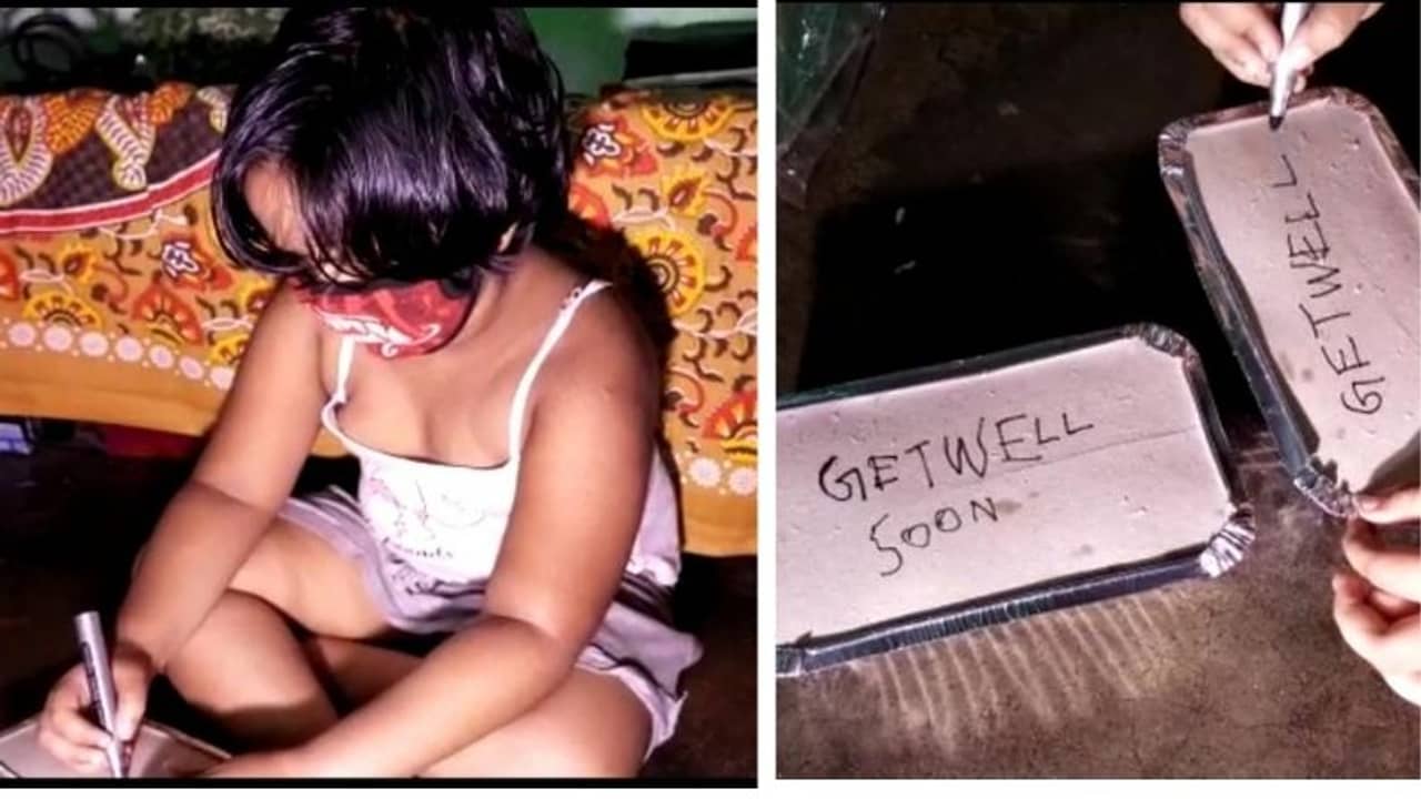 বীরভূম: করোনা (Corona) আক্রান্তদের জন্য একের পর এক খাবারের প্যাকেট তৈরি করছেন রেড ভলান্টিয়াররা (Red Volunteer)। আর সেই প্যাকেটের উপরে পাঁচ বছরের ছোট্ট গুলু মার্কার দিয়ে লিখে চলেছে ” Get well Soon”। অতিমারি কাটিয়ে সমাজ সুস্থ হয়ে উঠুক, সুস্থ হয়ে উঠুক তাঁর বাবা-মা, এটাই তার চাওয়া। খাবারের প্যাকেটের উপর তাঁর লেখা এই বার্তা পৌঁছে যাচ্ছে আশেপাশের করোনা আক্রান্তদের বাড়ি। ছোট্ট গোলুর বার্তা দেখে তাদের মুখেও হয়ত একচিলতে হাসি ফুটছে, দ্রুত সুস্থ হওয়ার মানসিক জোর পাচ্ছেন সবাই। এভাবেই রেড ভলান্টিয়ারদের সঙ্গে কাজ করে চলেছেন পাঁচ বছর বয়সী মেয়েটি।