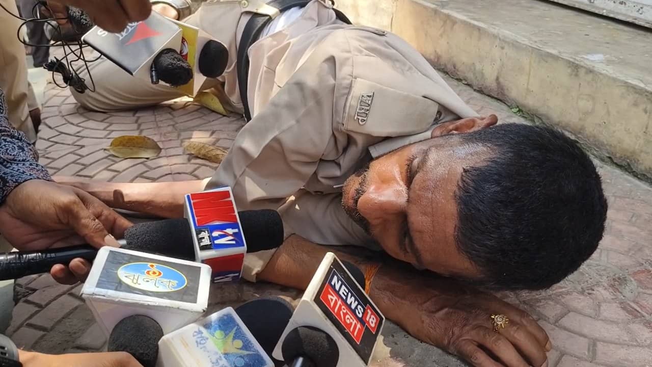 বোলপুর: উর্দি গায়ে রাস্তার পাশে শুয়ে পুলিশ কর্মী। এক ঝলক দেখলে মনে হবে ঘুমাচ্ছেন। কিন্তু রাস্তার পাশে কেন? এলাকার লোকজনের অভিযোগ, মদ খেয়েছে। মদ খেয়ে রাস্তার ধারে পড়ে আছে। দীর্ঘক্ষণ ওইভাবেই রাস্তার পাশে পড়ে রইলেন ওই পুলিশ কর্মী। তাঁকে দেখতে রীতিমতো জমে গেল ভিড়। কিন্তু, সে সবে হুঁশ নেই তাঁর। বোলপুর থানার লজ মোড়ে একটি মদের দোকানের উল্টোদিকে উর্দি পরা পুলিশের এই অবস্থা দেখে ততক্ষণে মুচকি হেসে রাস্তাতেই দাঁড়িয়ে পড়ছেন পথ চলতি লোকজন। সকলের মুখেই কৌতূহল। ততক্ষণে খবর চলে গিয়েছে বোলপুর থানায়।