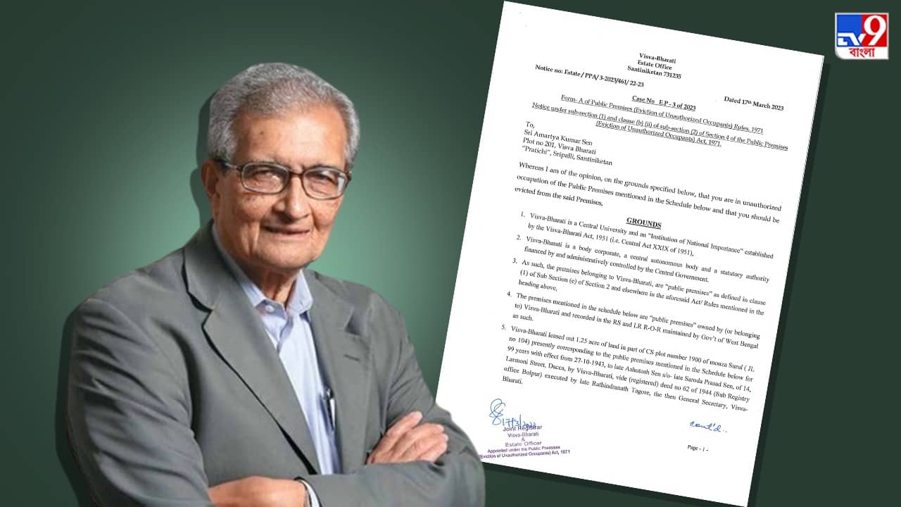 শুক্রবার নোবেল জয়ীকে এই নোটিস পাঠানো হয়েছে তাঁর শান্তিনিকেতনের প্রতীচীর বাড়িতে। নোটিসে বলা হয়েছে, “অমর্ত্য সেন বিশ্বভারতীর মোট ১ দশমিক ৩৮ একর জমি ভোগ করছেন। এর মধ্যে আইনগতভাবে তাঁর জমির পরিমাণ ১ দশমিক ২৫ একর।” বাকি জমি তাঁকে ফেরত দেওয়ার কথা বলা হয়েছে। নোটিসে এও বলা হয়েছে যে, শুনানিতে অমর্ত্য সেন বা তাঁর প্রতিনিধি কেউ গড় হাজির হলে একতরফা হিসাবে ঘোষণা করা হবে। নোটিস হাতে পেলে বিশ্বভারতী কর্তৃপক্ষ তার পরবর্তী পদক্ষেপ করতে পারবে। এরপর কী সিদ্ধান্ত নেওয়া হবে তা জানাবেন অমর্ত্য সেনের আইনজীবী।