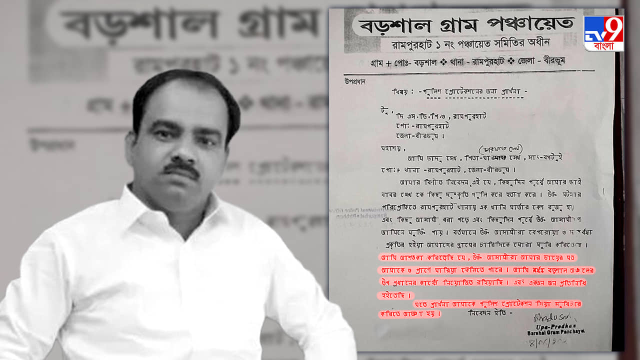 বড়শাল গ্রামপঞ্চায়েতের যে লেটার হেড, তাতেই এই চিঠি লিখেছিলেন ভাদু শেখ। একজন এসডিপিওকে চিঠি লেখার পরও কেন পুলিশ তাঁর নিরাপত্তার দায়িত্ব নিল না বা নিরাপত্তার জন্য নিরাপত্তারক্ষী দিল না তা নিয়ে প্রশ্ন উঠেছে। প্রসঙ্গত, বৃহস্পতিবারই রামপুরহাটের এসডিপিও সায়ন আহমেদকে সরিয়ে দেয় নবান্ন। তাঁর দায়িত্ববোধ নিয়ে প্রথম থেকেই অভিযোগ উঠছিল। ভাদু শেখের এই চিঠি সামনে আসার পর সেই গাফিলতির অভিযোগই আরও সুদৃঢ় হল।