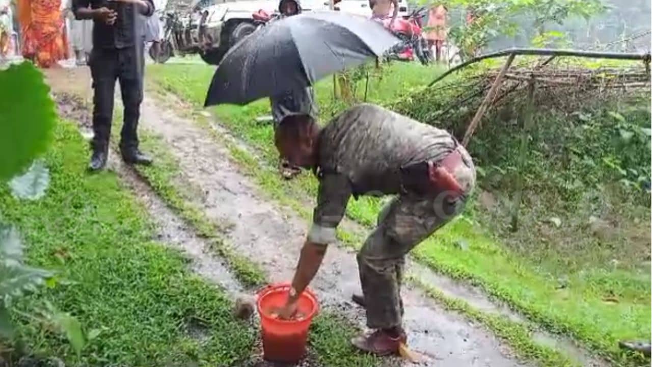 কোচবিহার: বিজেপি (BJP) প্রার্থীর বাড়ির সামনে থেকে তাজা বোমা উদ্ধার। তুফানগঞ্জে এই ঘটনাকে কেন্দ্র করে ভোটের মুখে শোরগোল। বিজেপি প্রার্থীর অভিযোগ, তৃণমূল (TMC) আশ্রিত দুষ্কৃতীরা এই ঘটনা ঘটিয়েছে। বক্সিরহাট থানায় খবর দেওয়া হয়। খবর পেয়েই ঘটনাস্থলে এসে পৌঁছয় পুলিশ। মঙ্গলবার সাতসকালে এই ঘটনাকে কেন্দ্র করে তুফানগঞ্জ-২ ব্লকের ভানুকুমারি-২ গ্রামপঞ্চায়েতের বালাকুঠি জোড়াইমোড় রাজনৈতিক উত্তেজনা ছড়ায়। ৯/১৩০ নম্বর গ্রামপঞ্চায়েতে এবার বিজেপির প্রার্থী হয়েছেন সুমিত দাস। এদিন সকালে তাঁর বাড়ির সামনে থেকেই বোমা উদ্ধার হয়। সুমিত দাসের অভিযোগ, শাসকদল ভয় পেয়ে এই ধরনের ঘটনা ঘটাচ্ছে। তাঁর দাবি, তৃণমূলের পায়ের তলায় মাটি নেই। তাই তারা এ ধরনের ঘটনা ঘটিয়ে মানুষকে ভয় দেখানোর চেষ্টা করছে।