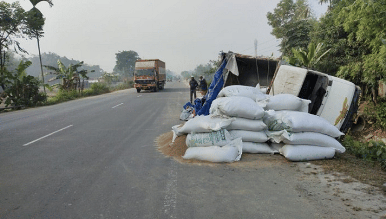 স্থানীয় সূত্রে জানা গিয়েছে, এদিন গঙ্গারামপুর এর দিক থেকে বালুরঘাটের অভিমুখে যাচ্ছিল মালবোঝাই এই লরিটি। রাস্তার একটি বাম্পার পার হওয়ার পরেই লরিটি নিয়ন্ত্রণ হারিয়ে রাস্তার ধারে উল্টে যায়।