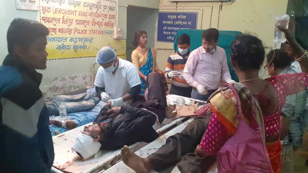 কন্যাযাত্রী ব্রজেন রায়েরও চোখের উপর আঘাত লেগেছে। তবে বাকি আর কোনও সমস্যা নেই বলেই জানান তিনি। সেই ব্রজেনের কথায়, “আমাদের গাড়ির চাকা ফেটে যায়। চালক আর নিয়ন্ত্রণে রাখতে পারেনি। এরপরই গাছের সঙ্গে ধাক্কা মারে। আমরা প্রায় ৩৫-৪০ জন ছিলাম।” প্রত্যক্ষদর্শী আব্দুল বারিক বলেন, “এখানে রাস্তা খুবই খারাপ। গাড়ি গাছে ধাক্কা মারে। বহু মানুষ আহত। অনেককেই হাসপাতালে পাঠানো হয়েছে। রাস্তা খারাপের জন্যই এই দুর্ঘটনা। অনেকবারই রাস্তা ঠিক করে। কিন্তু কী দিয়ে ঠিক করে কেউ জানে না। ১০-১৫ দিন যেতে না যেতেই আবার এক অবস্থা হয়।”