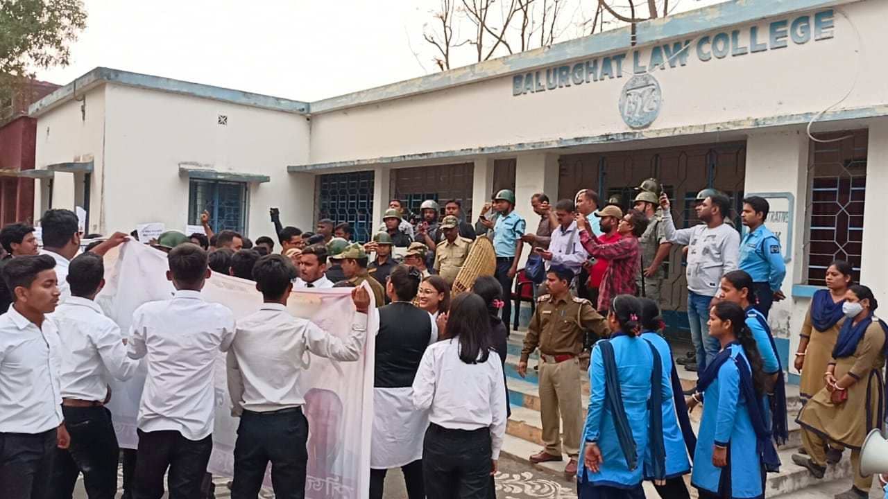 এদিন বালুরঘাট ল কলেজে পরিচলন কমিটির বৈঠক ছিল। সেখানেই যোগ দেন কলেজের পরিচালন কমিটির সভাপতি তথা রাজ্যের মন্ত্রী বিপ্লব মিত্র। তার আগেই দুই গোষ্ঠী সংঘর্ষে জড়িয়ে পড়ায় তা নিয়ে জোর চর্চা শুরু হয়েছে জেলার রাজনৈতিক মহলে। এক গোষ্ঠীর পড়ুয়াদের অভিযোগ, রাতের অন্ধকারে পরিচালন কমিটি গঠন করা হয়েছে। গত চার বছর ধরে কলেজে কোনও অডিট হয়নি। এরকমই একাধিক অভিযোগ নিয়ে তাঁরা এদিন ধর্নায় বসেন। অভিযোগ, তাঁদের তুলে দেওয়ার চেষ্টা করে অন্য গোষ্ঠীর পড়ুয়ারা। চালানো হয় হামলা। তখনই বেঁধে যায় সংঘর্ষ। দুই গোষ্ঠীর পড়ুয়ারা উইকেট, স্টাম্প, ক্রিকেট ব্যাট ও লাঠি সোটা নিয়ে একে অপরের বিরুদ্ধে সংঘর্ষে জড়িয়ে পড়ে বলে জানা যায়।