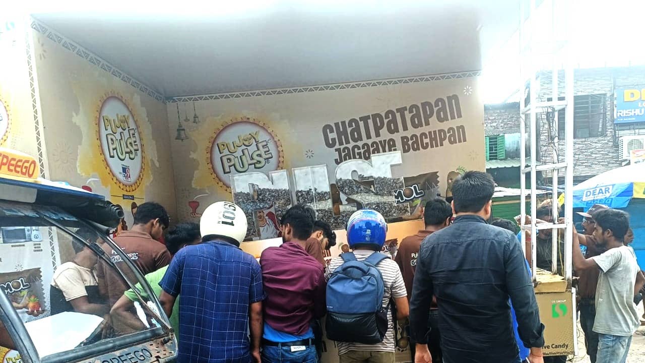 পালস ক্যান্ডির টক-নোনতা স্বাদ নিতে পুজোয় পালস ট্যাবলোর সামনে ভিড় করছেন পথচলতি মানুষ।