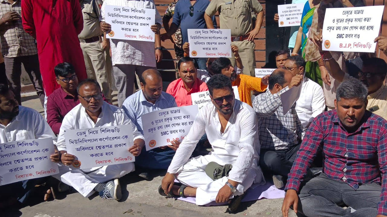 শিলিগুড়ির বিজেপি বিধায়ক শঙ্কর ঘোষ ও মাটিগাড়া-নকশালবাড়ির বিধায়ক আনন্দ বর্মনের নেতৃত্বে কর্মীরা আচমকা পৌরনিগমের গেটে হাজির হয়ে বিক্ষোভ দেখাতে শুরু করেন। শঙ্কর ঘোষ বলেন,”দুয়ারে সরকার নয়, শিলিগুড়িতে দুয়ারে ডেঙ্গি এসেছে। প্রশাসন কাজ করছে না। ব্যর্থ বোর্ড কর্তারা উদাসীন হয়ে ঘুরছেন। কেন চিকিৎসকদের দল আনা হচ্ছে না, কেনই বা ফগিং- স্প্রে হচ্ছে না?” তাঁর আরও সংযোজন, “পরিস্থিতির উন্নতি না হলে আমরা লাগাতার পৌরনিগম ঘেরাও করব।”