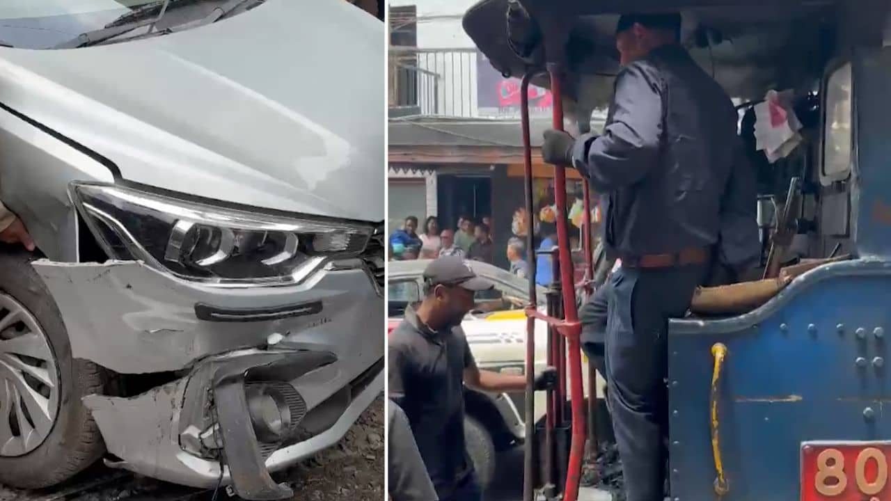 দার্জিলিং: পাহাড়ে ফের টয়ট্রেন দুর্ঘটনা। মঙ্গলবার দুপুরে আচমকা একটি পর্যটক বোঝাই গাড়িতে ধাক্কা মারে টয় ট্রেন। ঘুম থেকে দার্জিলিঙের দিকে যাচ্ছিল টয় ট্রেনটি। সেই সময়েই পর্যটক বোঝাই এক চার চাকার গাড়িতে সজোরে ধাক্কা মারে টয় ট্রেন। দুর্ঘটনাস্থলের যে ভিডিয়ো প্রকাশ্যে এসেছে, তাতে দেখা যাচ্ছে গাড়ির সামনের বাঁ দিকের অংশ দুমড়ে গিয়েছে। পর্যটকদের অল্প বিস্তর চোট লাগলেও, স্বস্তির বিষয় কোনও প্রাণহানির ঘটনা ঘটেনি। দুপুরে পাহাড়ি রাস্তায় এই দুর্ঘটনার জেরে বেশ কিছুক্ষণ যান চলাচল ব্যাহত হয় দার্জিলিংয়ের রাস্তায়। যদিও পরবর্তীতে দুর্ঘটনাগ্রস্ত গাড়িটিকে রাস্তা থেকে সরিয়ে অন্যত্র নিয়ে যাওয়া হয় এবং যান চলাচল স্বাভাবিক হয়।