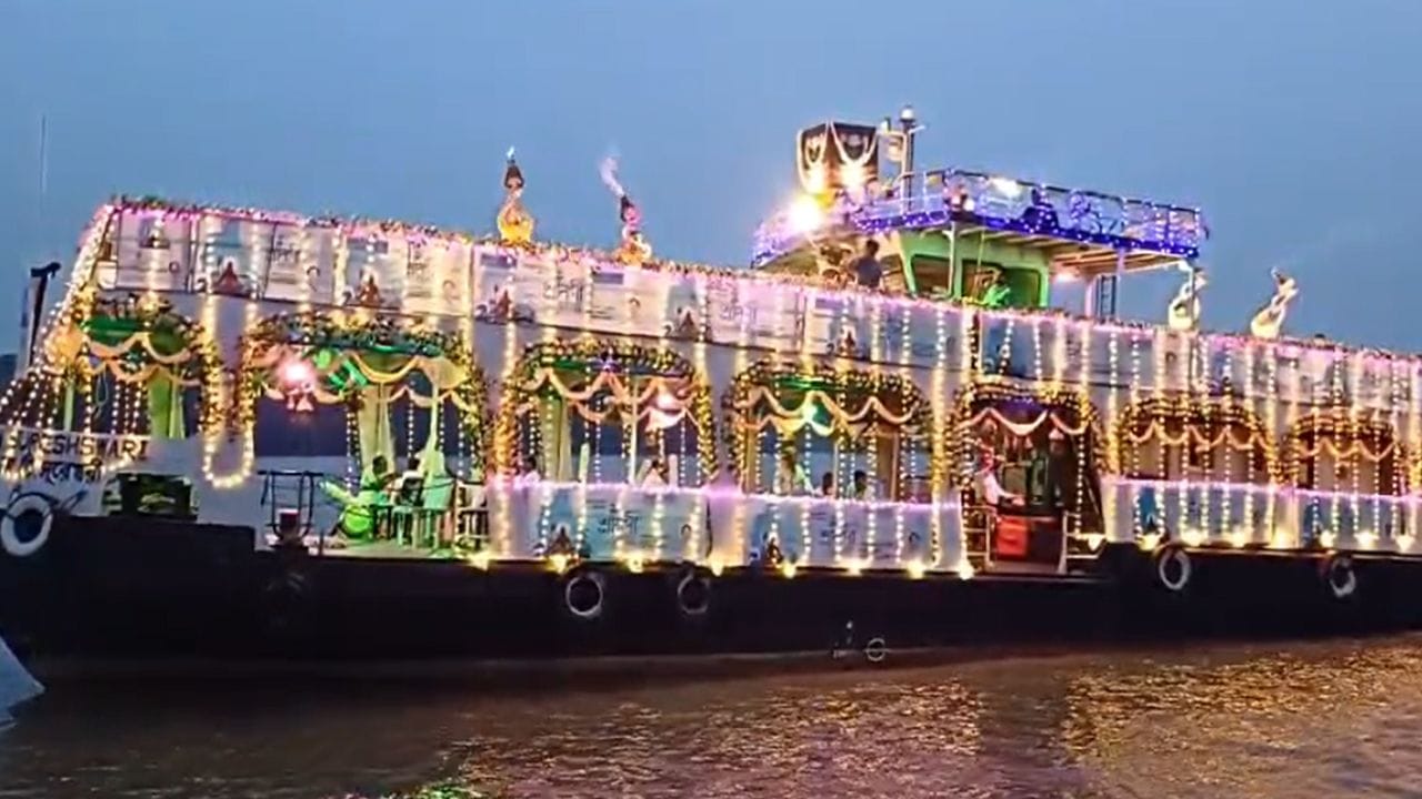 হুগলি: শ্রাবণী মেলা উপলক্ষে এই প্রথমবার গঙ্গা আরতি হল চন্দননগর রানিঘাটে। তাও একেবারে গঙ্গাবক্ষ থেকেই। গঙ্গার ঘাট থেকে গঙ্গা আরতি হয়। তবে রানিঘাটে অন্য ছবি। বারাণসীতে যেমন গঙ্গার ঘাটে আরতি হয়। এদিন রানিঘাটেও সেই ছবি দেখা গেল। শ্রাবণে তারকেশ্বরে শ্রাবণী মেলা হয়। লক্ষ পুণ্যার্থীর ভিড় হয় এখানে। প্রথা মেনে বৈদ্যবাটি নিমাইতীর্থ গঙ্গার ঘাট থেকে জল নিয়ে বাঁক কাঁধে ভক্তরা তারকেশ্বরের পথে ছোটেন। কাঁধে বাঁক, মুখে ‘ভোলে বাবা পার করেগা’।