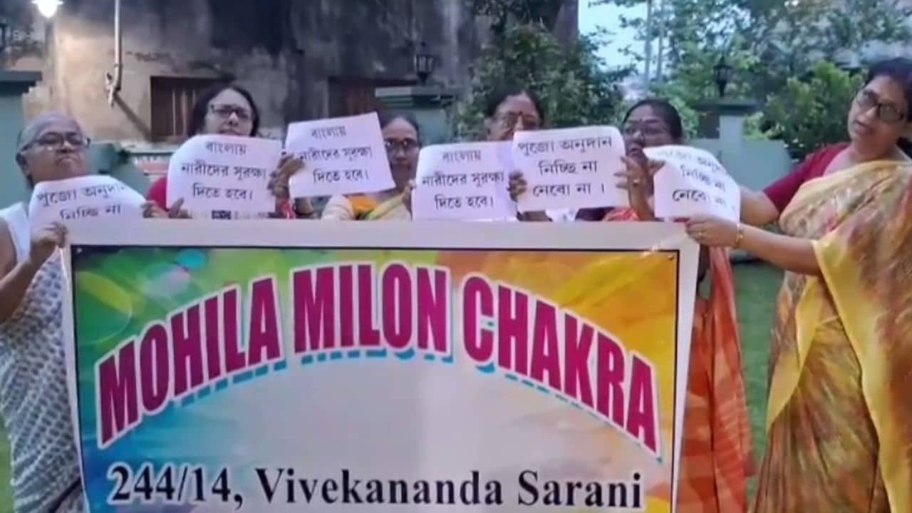 গত বছর আরজি কর কাণ্ডের প্রতিবাদ জানিয়ে দুর্গা পুজোর সরকারি অনুদান নেয়নি অনেক পুজো কমিটি। তার মধ্যে ছিল হুগলির বৈদ্যবাটির ‘মহিলা মিলন চক্র ক্লাব’। গত বছরের মতো এই বছরও তারা দুর্গাপুজোর সরকারি অনুদান নিচ্ছেন না। দীর্ঘ ষাট বছর ধরে এই পুজো করে আসছেন এই মহিলা পরিচালিত পুজো কমিটির সদস্যরা। এ দিন, বাংলার নারীদের সুরক্ষার দাবিতে পোস্টার হাতে প্রতিবাদে সামিল হন বিবেকানন্দ সরণীর মহিলা মিলন চক্র ক্লাবের সদস্যরা।