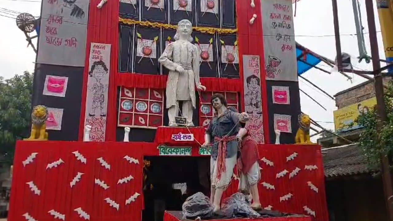 সোজা কথায়, গোটা বাংলা যখন দুর্গাপুজোর প্রস্তুতি শুরু করে তখন এই এলাকার মানুষ মেতে থাকেন লক্ষ্মী পুজোর প্রস্তুতি নিয়ে। সমস্ত ক্লাব নিজেরাই নিজেদের মতো করে থিমের চিন্তা ভাবনা করে মণ্ডপ সাজিয়ে তোলার কাজ শুরু করেন পুজোর প্রায় তিন মাস আগে থেকে। এখানের বিবেকানন্দ ক্লাবের পূজা এবছর ৪৩ তম বর্ষে পা দিয়েছে। তাদেরই এবার পুজোর থিম হীরক রাজার দেশে। মণ্ডপের সামনেই রাজা কে দড়ি ধরে টান মারছে প্রজা। সঙ্গে মণ্ডপ জুড়ে নানা উক্তি। এই মণ্ডপ দেখতেই নেমেছে মানুষের ঢল।