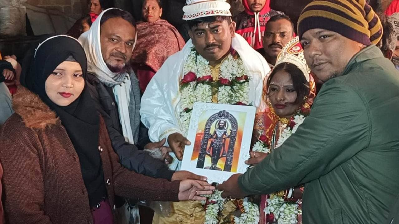 হুগলি: আমাদের একটাই দেশ, একতা যে দেশের প্রধান শক্তি। জন্মসূত্রে ধর্ম পৃথক হতেই পারে, তবে কর্মের হাত ধরে মানবতাই প্রতিটা মানুষের ধর্ম। ডানকুনির বাবলু সরকার মেয়ের বিয়ে দিতে পারছিলেন। আর্থিক দুঃস্থতার কারণে মেয়ের বিয়ের কথা এগোলেও পিছিয়ে আসতে হচ্ছিল। সোমবার তাঁর পাশে এসে দাঁড়ালেন শেখ আশরফ, শেখ মামুদরা। নিজেরা দাঁড়িয়ে থেকে বিয়ে দিলেন বাবলু সরকারের মেয়ে বন্দনার। সমস্ত খরচ বহন করলেন তাঁরাই। শুধু তাই নয়, গতকাল যেহেতু রামলালার প্রাণ প্রতিষ্ঠা অনুষ্ঠান ছিল, তাই নবদম্পতি উপহার হিসাবে তুলে দিলেন সেই রামলালারই ছবি।