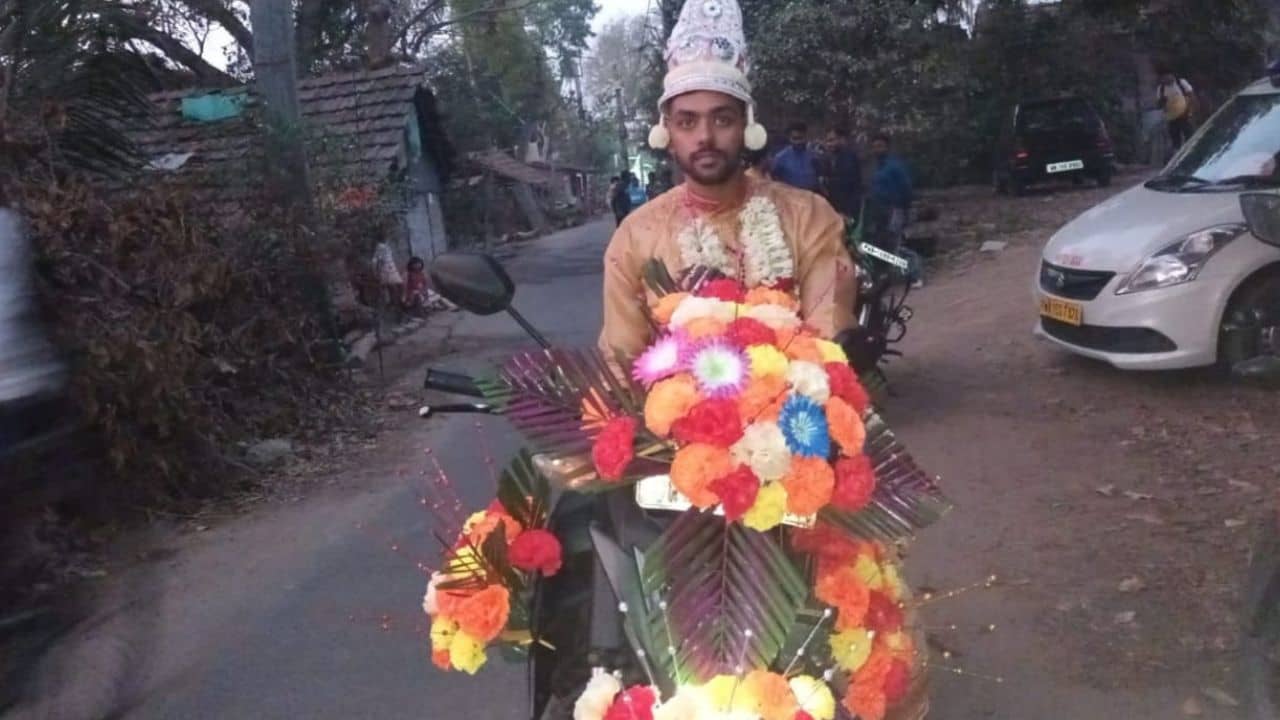 চন্দননগর হরিদ্রা ডাঙায় বিয়ে করছেন সৌম্যদীপ। সাধারণত বিয়েচে ফুল সাজানো গাড়ি নিয়েই যান অন্যান্যরা। কিন্তু সৌম্যদীপ ব্যতিক্রম। তাঁর মতে, জীবনের এই পর্বটাও অ্যাডভেঞ্চার দিয়েই শুরু হওয়া জরুরি। চার চাকায় আরামের যাত্রা তাঁর পছন্দ নয়। তাই বাইককেই সাজিয়ে নিয়ে বিয়ে করতে যান তিনি।