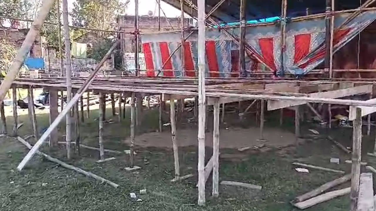 সেই জায়গায় যাতে কোনও অপ্রীতিকর ঘটনা না ঘটে, তার জন্য পুলিশ সুপার চাইছেন পোক্ত করা হোক মঞ্চ। সেখানে দেখা যায় কাঠের পাটা দিয়ে বাঁশের খুঁটিতে মঞ্চ তৈরি করা হচ্ছে, যা খুব একটা শক্তপোক্ত নয়। এরপরই নির্দেশ দেওয়া হয়, শাল-বল্লার খুঁটি দিয়ে ভাল করে মঞ্চ তৈরি করতে হবে।