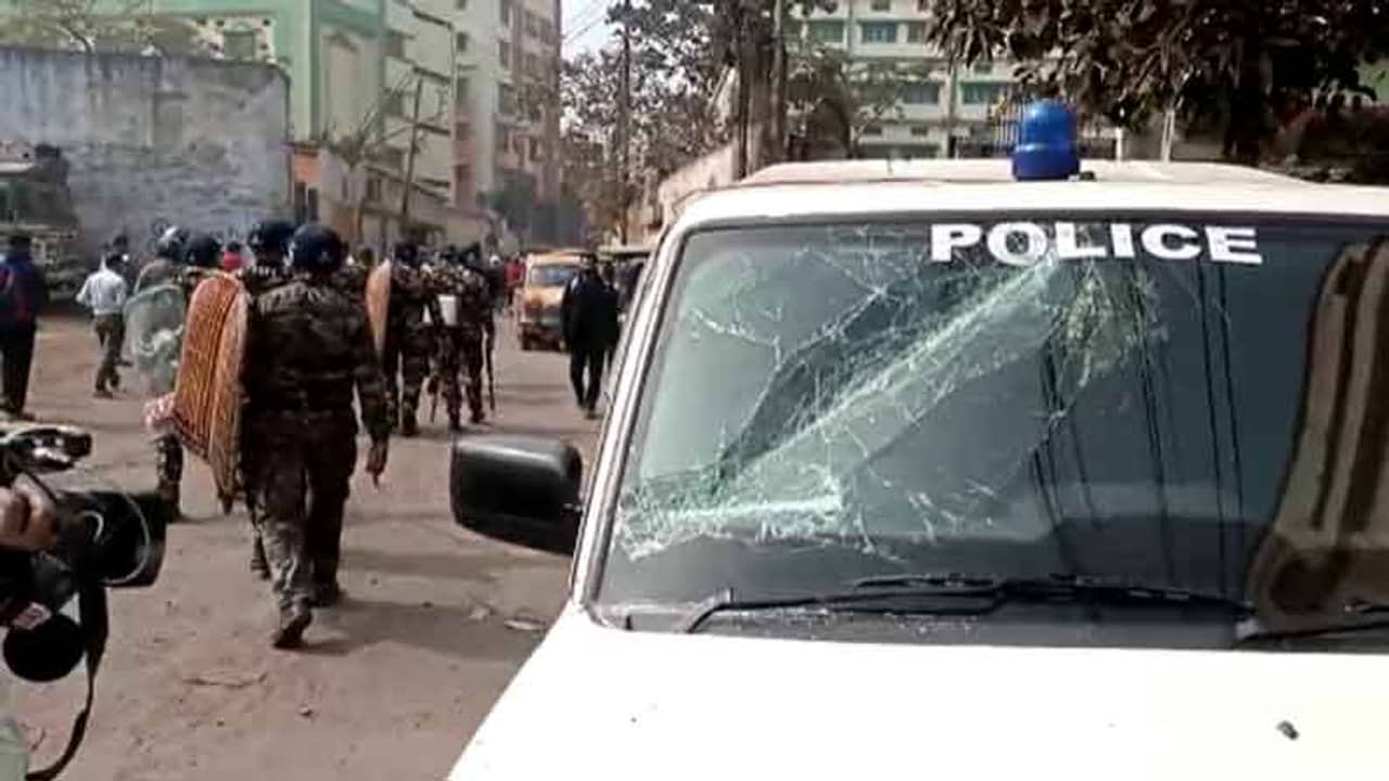 দু’পক্ষে শুরু হয় ইটবৃষ্টি। একজনের গুলি লেগেছে বলেও খবর। লাঠি, বন্দুক হাতে রাস্তায় দেখা যায় বিক্ষোভকারীদের। পরিস্থিতি নিয়ন্ত্রণে আনতে রীতিমতো হিমশিম খেতে হয় পুলিসকে। বিজেপির অভিযোগ, পুলিসের উপস্থিতিতেই তাঁদের দলীয় কর্মীদের ওপর হামলা চালিয়েছে শাসকদল। পুলিস কর্মীদের সঙ্গেও একপ্রস্থ ধস্তাধস্তি হয় বিজেপি কর্মীদের। পরিস্থিতি সামাল দিতে এলাকায় নামানো হয় র্যাফ।