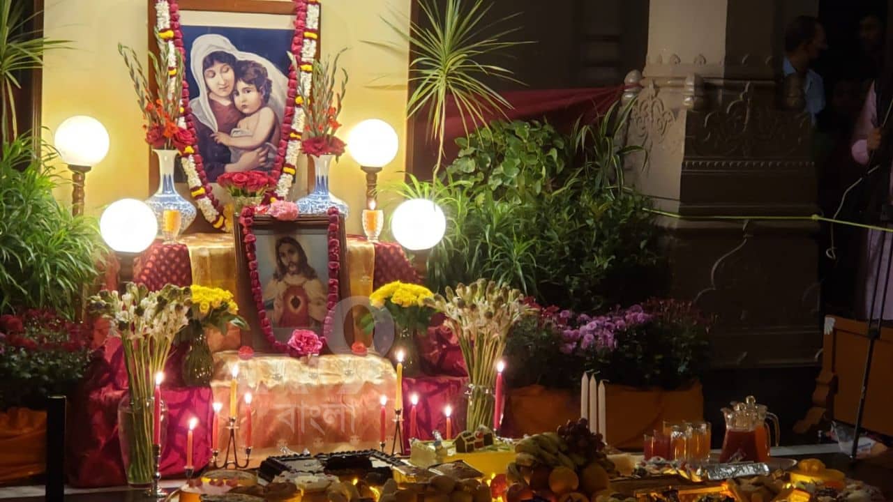 সন্ধ্যা আরতির পর মূল মন্দিরের ডান দিকে প্রভু যিশুর ছবির সামনে ফুল,মালা, ধূপ ধুনো দেওয়ার ব্যবস্থা করা হয়। কেক, পেস্ট্রি, চকলেট, মিষ্টি ইত্যাদি দিয়ে পুজো নিবেদন করা হয়। সঙ্গে সন্ন্যাসী-মহারাজদের গাওয়া ক্যারল।