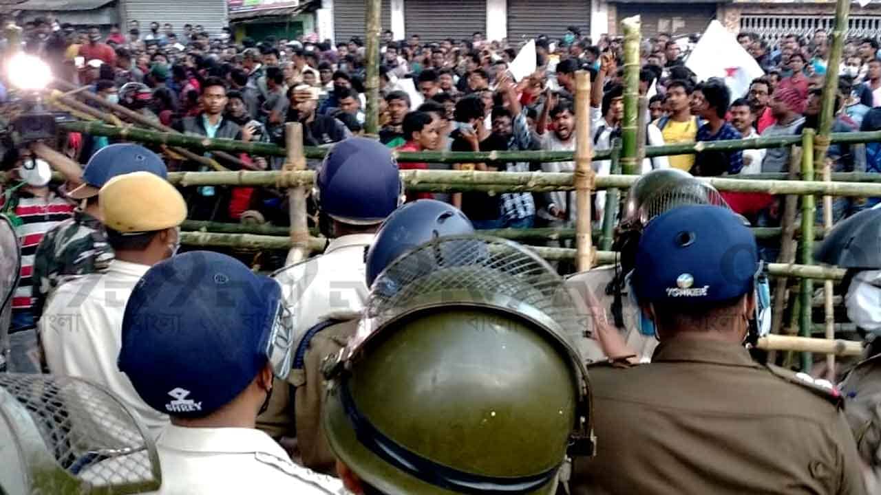 গত দু’দিন ধরেই বিক্ষোভের ছবি দেখা যাচ্ছে আমতা থানার সামনে। এদিন দুপুর থেকেই গোলমালের আবহ তৈরি হচ্ছিল। ডিওয়াইএফআই ও এসএফআইয়ের বিক্ষোভে পুলিশি ব্যারিকেড বাধা হয়ে দাঁড়ালে সে পরিস্থিতি মুহূর্তে অগ্নিগর্ভ হয়ে ওঠে। ব্যারিকেডের এক পাশে দাঁড়িয়ে তখন ক্ষোভে ফুঁসছেন ছাত্রনেতারা। অন্যদিকে পুলিশসুপারের নেতৃত্বে দাঁড়িয়ে বিশালবাহিনী। প্রথম দিন থেকে আমতা থানার ওসি ও হাওড়া গ্রামীণের পুলিশসুপারের পদত্যাগের দাবি করা হয়। ইতিমধ্যেই ওসি বদল করা হয়েছে। কিন্তু আন্দোলনকারীদের দাবি, যথাযথ বিচার করে ন্যায় দিতে হবে আনিসের পরিবারকে।