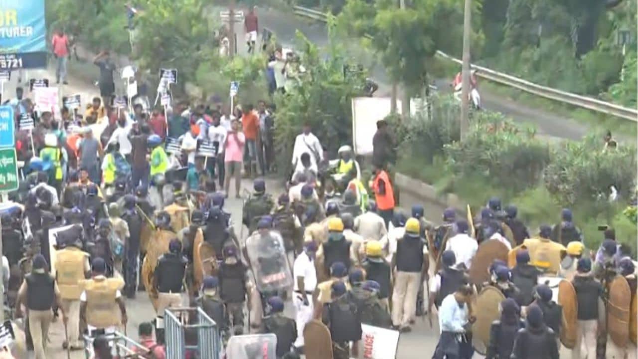 এ দিকে, আন্দোলনকারীদের ছত্রভঙ্গ করতে শুরু হয় ধরপাকড় প্রক্রিয়া। লাঠি উঁচিয়ে এগিয়ে যায় পুলিশ। আন্দোলনকারীরা যে যেখানে লুকিয়ে ছিলেন, খুঁজে খুঁজে বের করে ছত্রভঙ্গ করা শুরু করে পুলিশ। লাঠিপেটা করে বের করা হয় তাঁদের। এ দিকে, জলকামান ছোড়া শুরু হতেই আন্দোলনকারীরা পিছু হঠতে শুরু করে।