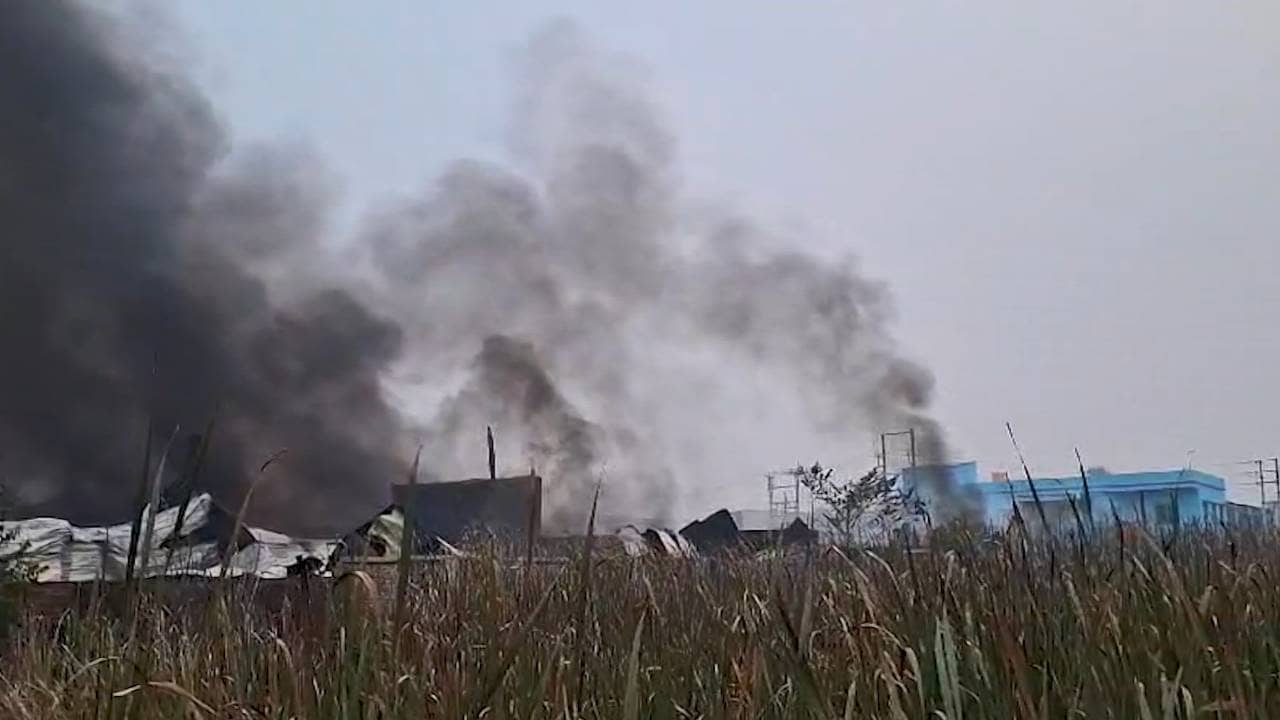 আমতা: আমতায় ভয়াবহ আগুন। বিধ্বংসী আগুন নতুন রাস্তার কাছে থাকা একটি প্লাস্টিক কারখানায়। সূত্রের খবর, রাত ১২টা নাগাদ প্রথম আগুনের লেলিহান শিখা দেখা যায়। মুহূর্তেই দাউদাউ করে জ্বলে যায় আস্ত কারখানা। খবর পেয়ে ঘটনাস্থলে আসে দমকলের ৬টি ইঞ্জিন। রাতভর চলে আগুন নেভানোর কাজ। ভোর পর্যন্ত আগুন কিছুটা নিয়ন্ত্রণে এলেও পুরোপুরি নেভানো সম্ভব হয়নি। সকালেও গলগল করে ধোঁয়া বের হতে দেখা যায়।
