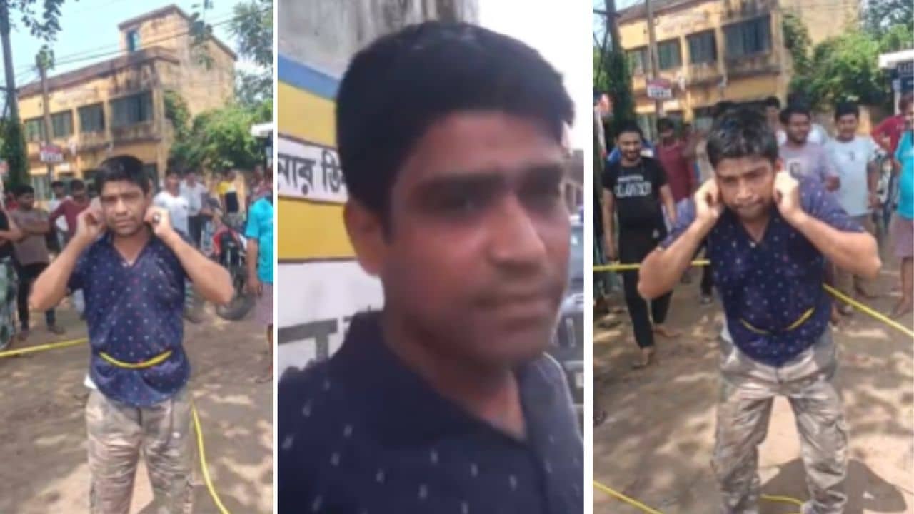 উলুবেড়িয়া: সিভিক ভলেন্টিয়রকে হাতে পায়ে দড়ি বেঁধে মারধর ও কান ধরে ওঠবস করানোর অভিযোগ উঠল তৃণমূল কর্মীদের বিরুদ্ধে। ঘটনাটি ঘটেছে মঙ্গলবার উদয়নারায়ণপুর পেরো থানায় এলাকায় বসন্তপুর বাজারে । সেই ছবি সামাজিক মাধ্যমে ভাইরাল হয়েছে। যদিও TV9- এর সত্যতা যাচাই করেনি।