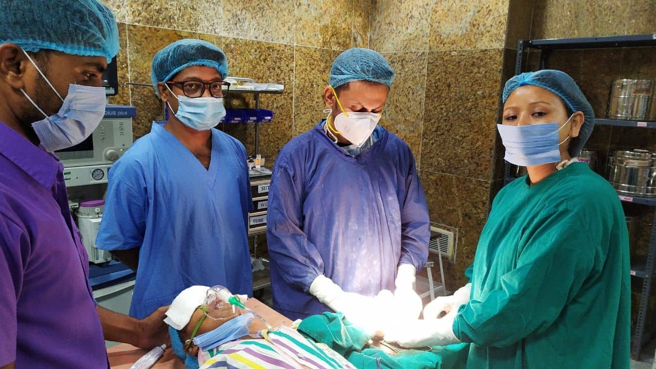 এরপর রবিবার রাতে জলপাইগুড়ি সুপার স্পেশালিটি হাসপাতালে নিয়ে যাওয়া হয় শিশুকে। সেই সময় হাসপাতালে অন কল সার্জেন ছিলেন চিকিৎসক সঞ্জীব কুমার রায়। শিশুটিকে দেখার পর সঙ্গে সঙ্গে তিনি সিদ্ধান্ত নেন অপারেশন করার। এরপর আর দেরি না করে চটজলদি টিম গঠন করে নেন। প্রায় এক ঘণ্টা ধরে চলে শিশুটির জটিল অপারেশন। তার আঙুল বাঁচিয়ে লোহার তৈরি মোটা নাট টুকরো টুকরো করে কেটে বের করা হয়।